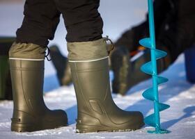 - по-третє, легкими. На зимовій рибалці, щоб досягти гарного вилову, доводиться не тільки терпляче сидіти біля лунки, а й багато ходити. Треба дістатися перспективного місця, яке часом знаходиться за кілька кілометрів від берега, та й там ще побігати, посвердлити лунок, щоб знайти рибу. У важкому взутті далеко не підеш, а до кінця риболовлі взагалі ледве ноги тягатимеш.